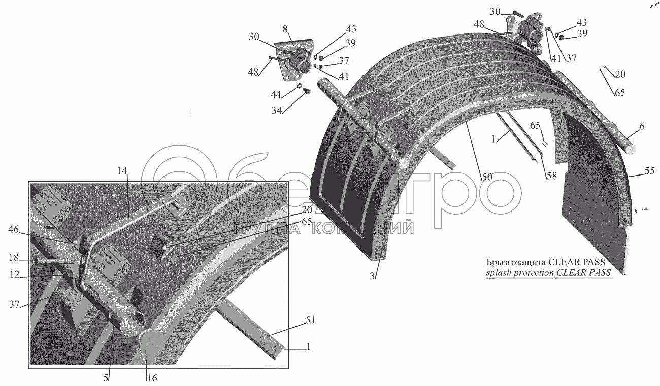Каталог запасных частей к технике: МАЗ-544018. Установка крыльев 544019-8500048-070