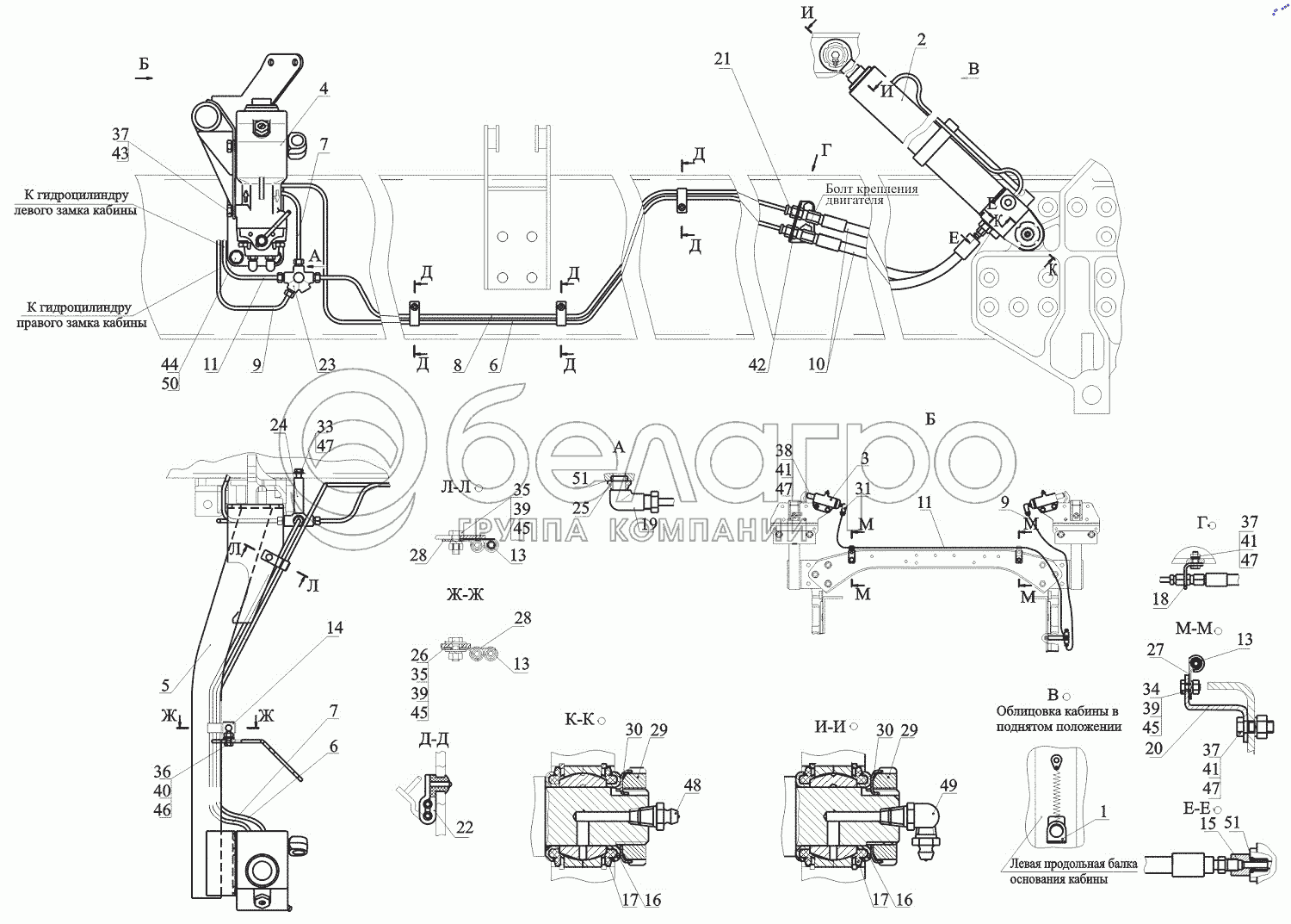 Каталог запасных частей к технике: МАЗ-544018. Установка механизма подъема кабины 544019-5000040