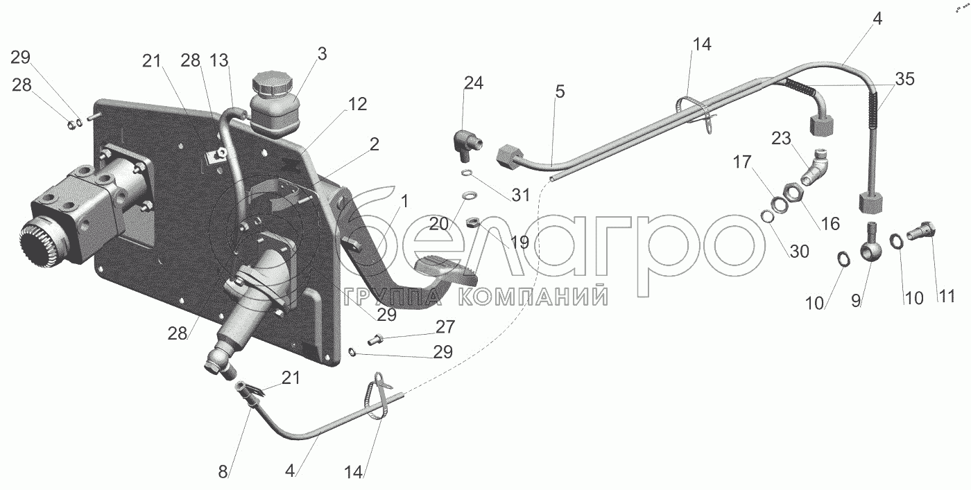 Каталог запасных частей к технике: МАЗ-544018. Установка механизма управления сцеплением 544019-1600005