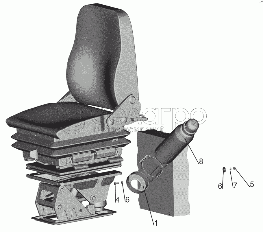 Каталог запасных частей к технике: МАЗ-544018. Установка огнетушителя 6430-3910040