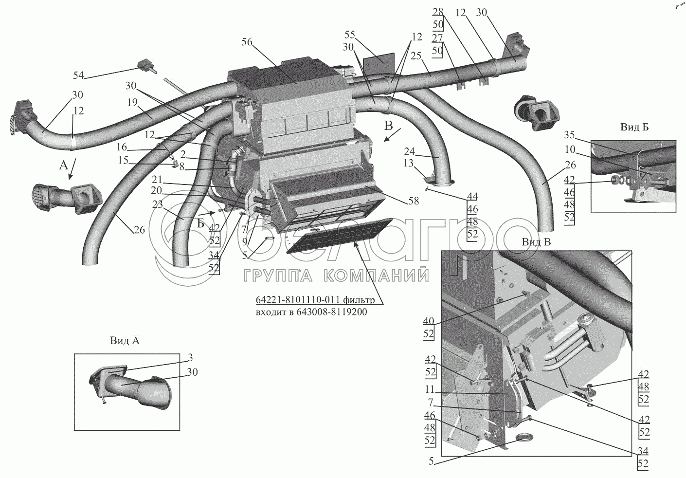Каталог запасных частей к технике: МАЗ-544018. Установка отопителя 631019-8100001