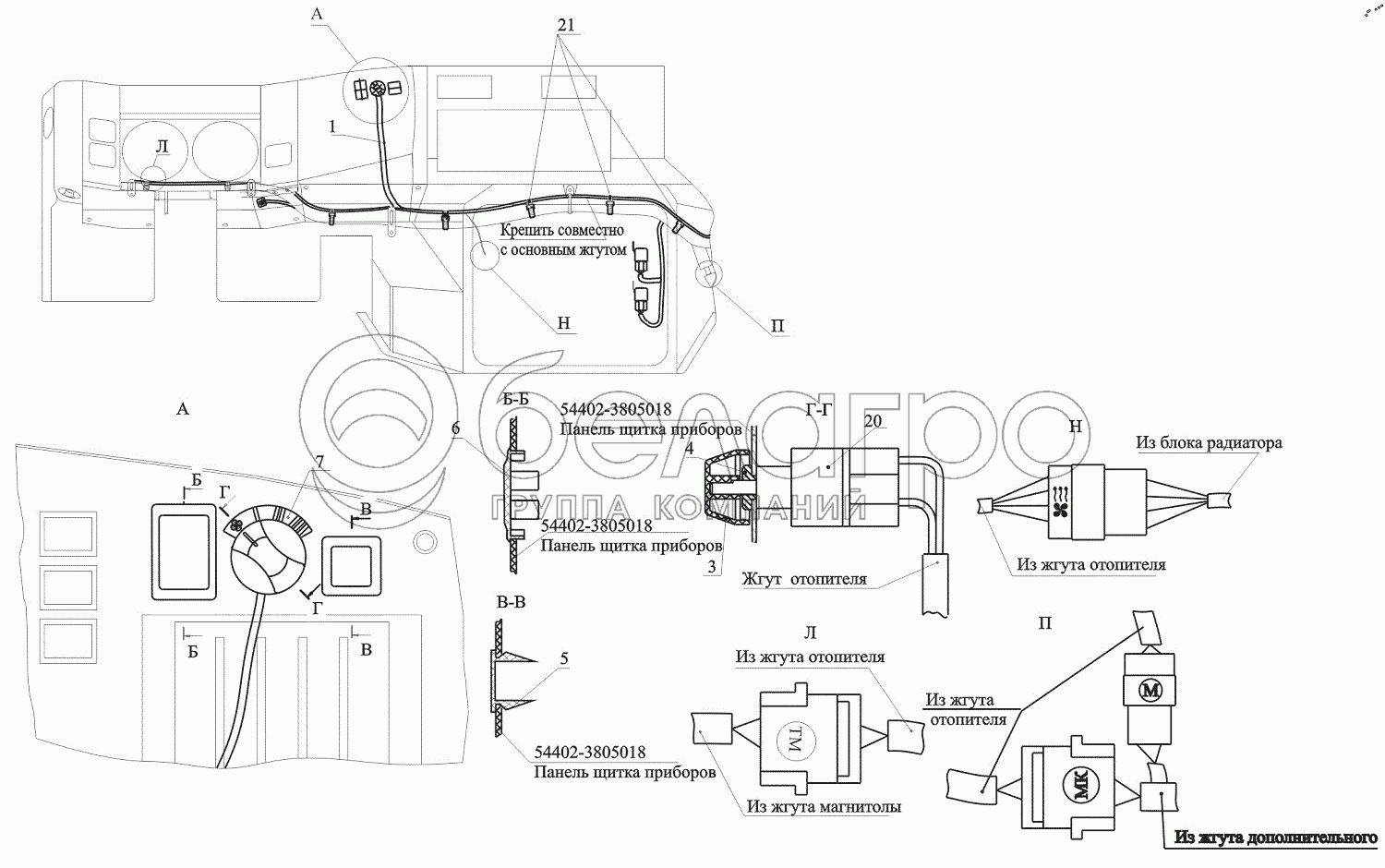 Каталог запасных частей к технике: МАЗ-544018. Установка переключателей отопителя 6430-3700100-010