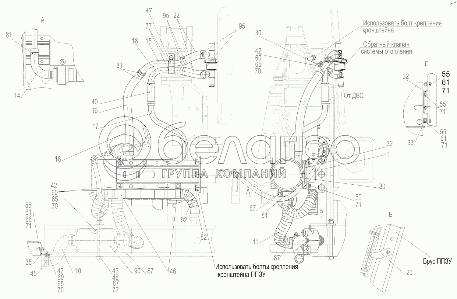 Каталог запасных частей к технике: МАЗ-544018. Установка подогревателя 544019-1015001-010