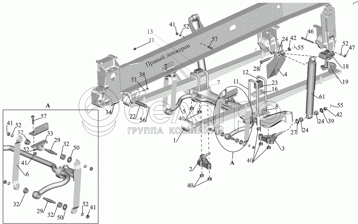 Каталог запасных частей к технике: МАЗ-544018. Установка подвески передней 544018-2900001-030