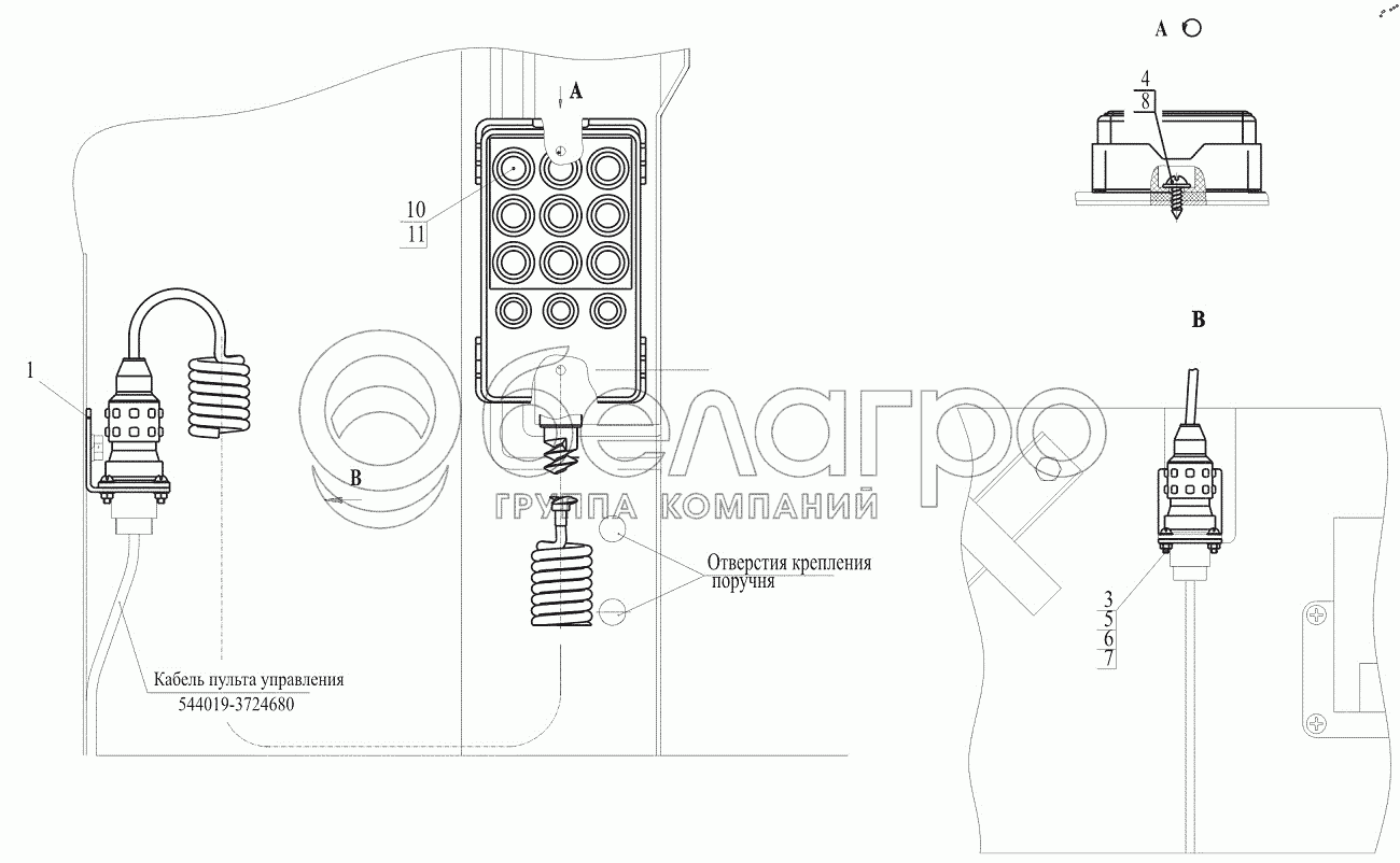 Каталог запасных частей к технике: МАЗ-544018. Установка пульта управления пневмоподвеской 544019-3700153