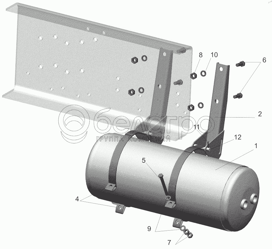 Каталог запасных частей к технике: МАЗ-544018. Установка ресивера 544018-3513005
