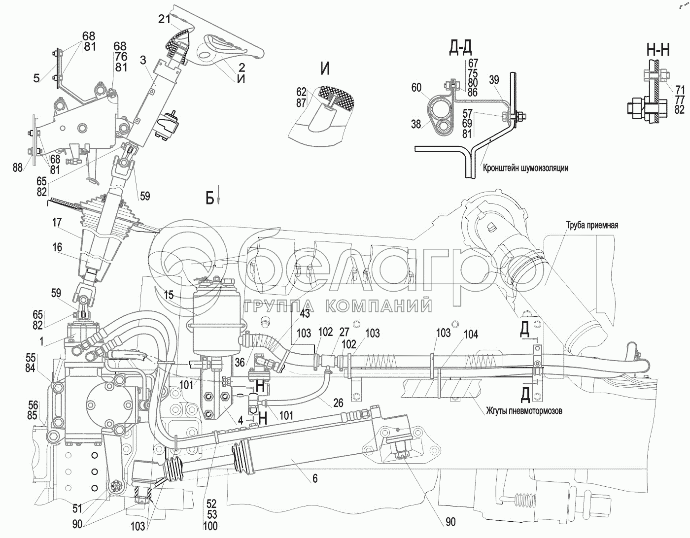 Каталог запасных частей к технике: МАЗ-544018. Установка рулевого управления 5440E9-3400001