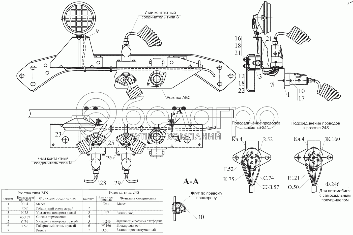 Каталог запасных частей к технике: МАЗ-544018. Установка штепсельных розеток 544019-3700015