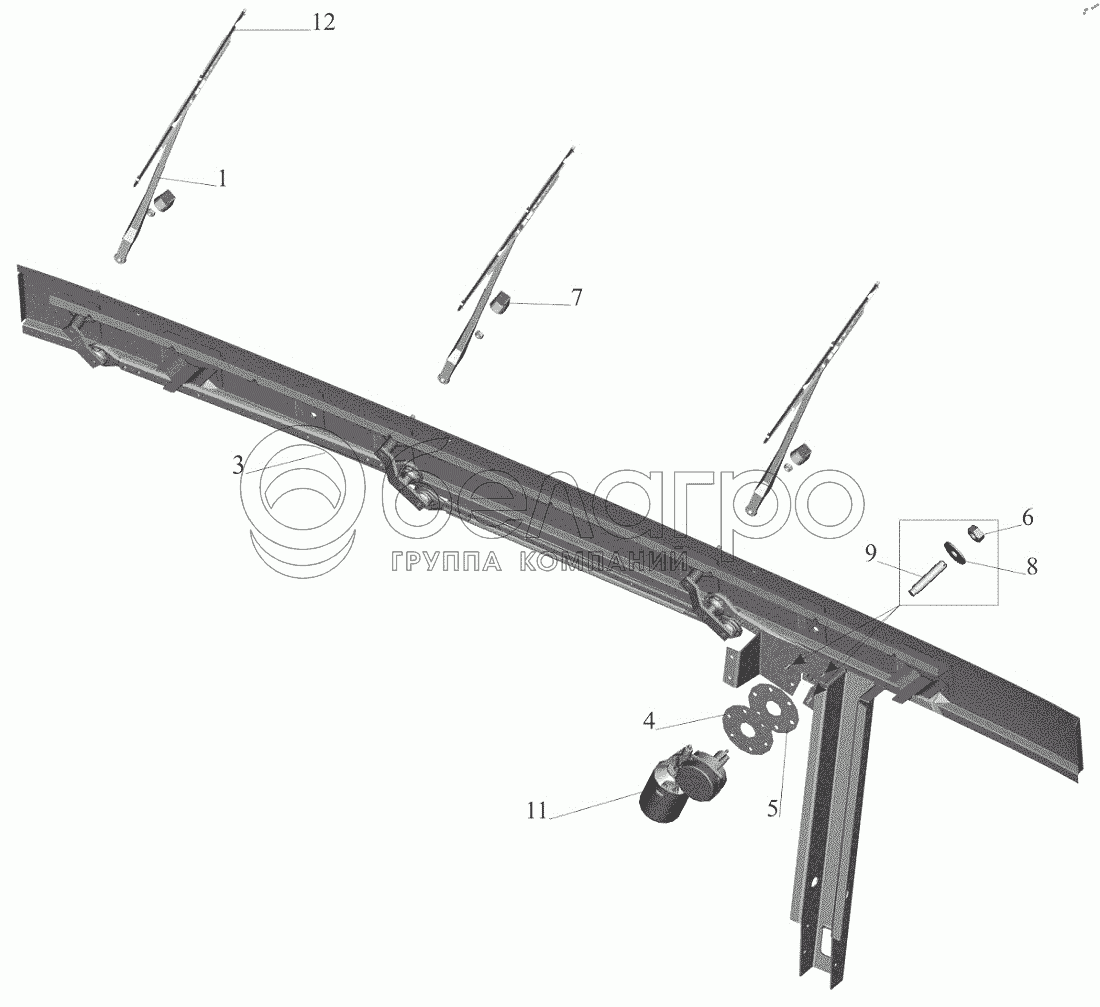 Каталог запасных частей к технике: МАЗ-544018. Установка стеклоочистителя 6430-3700041-001