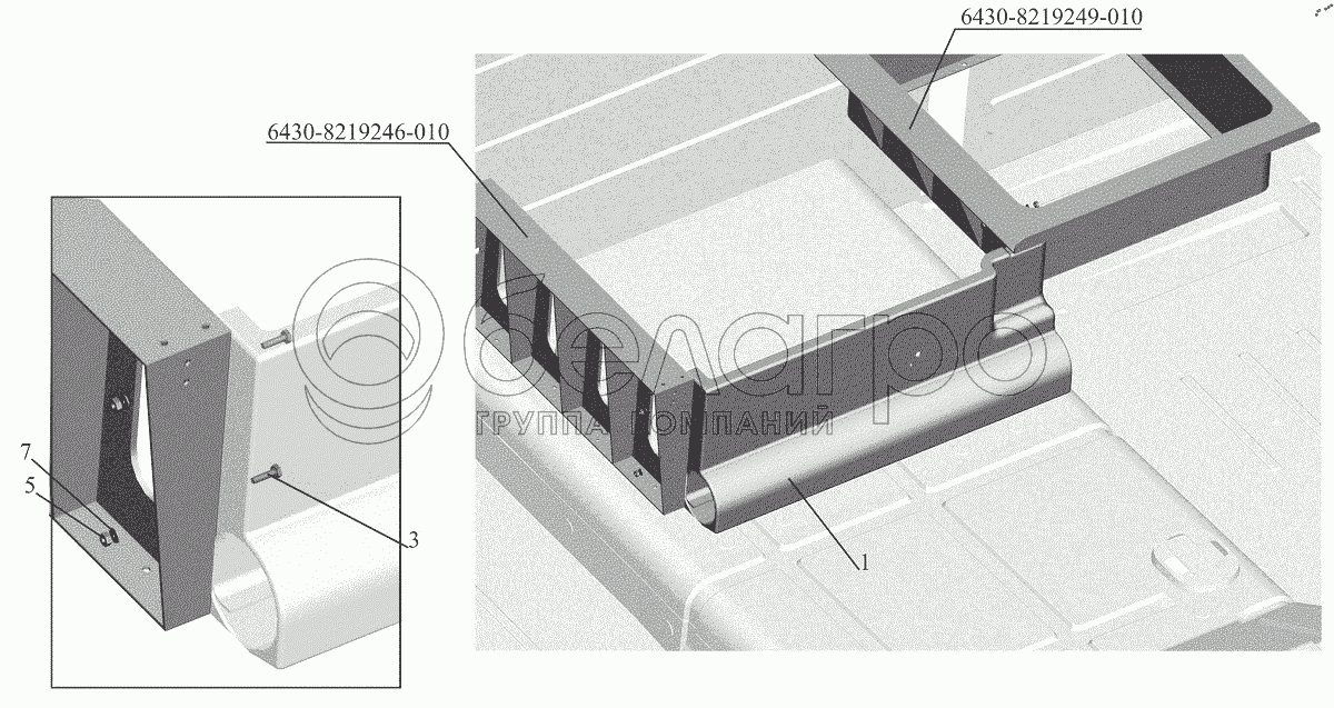 Каталог запасных частей к технике: МАЗ-544018. Установка стенки 6430-8200041
