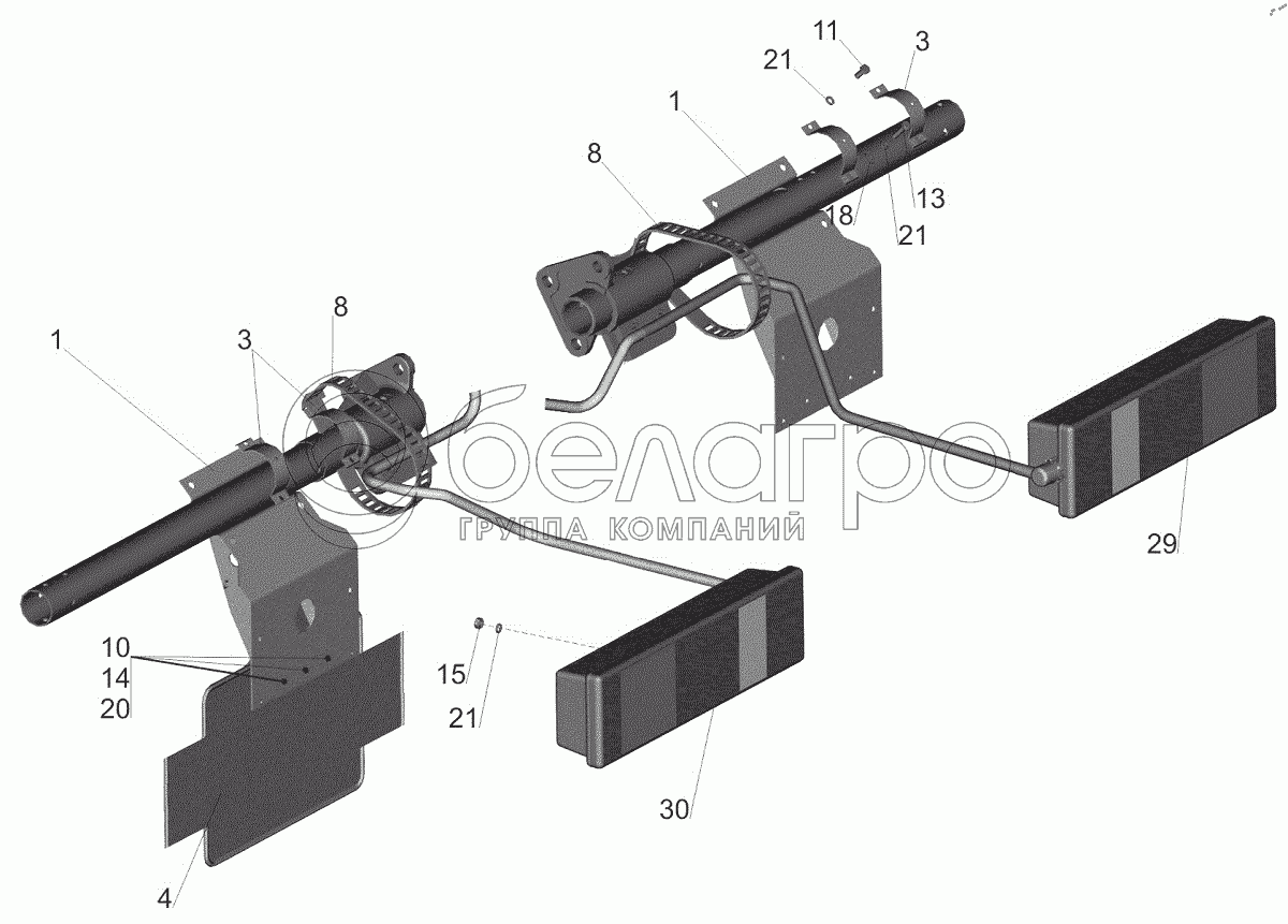 Каталог запасных частей к технике: МАЗ-544018. Установка задних фонарей 544019-3700009