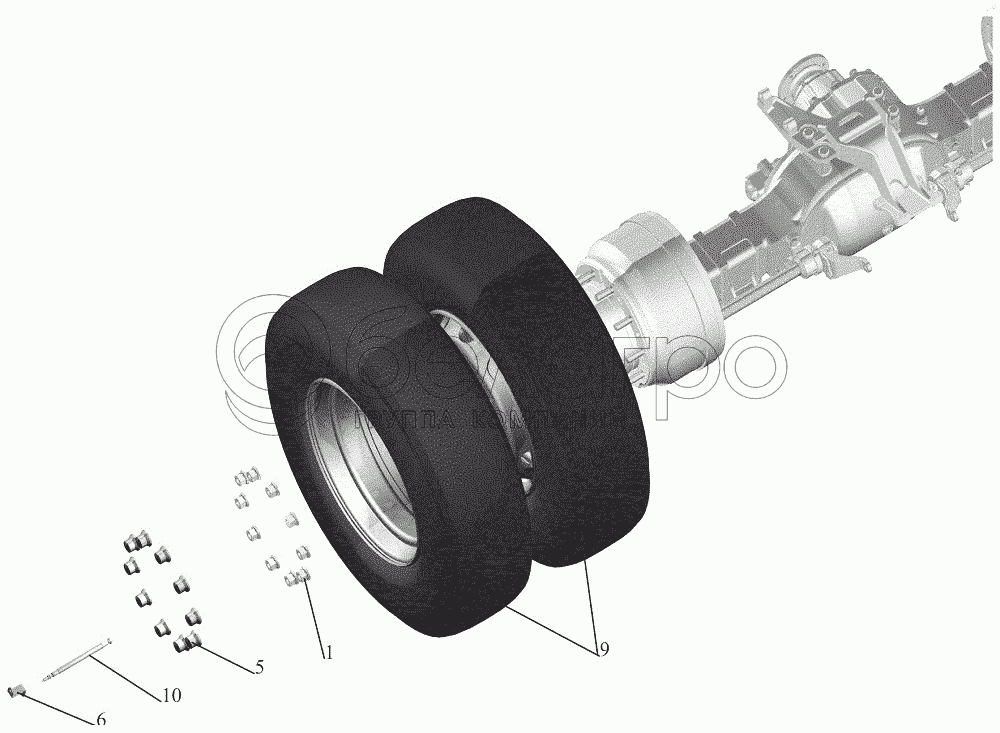 Каталог запасных частей к технике: МАЗ-544018. Установка задних колес