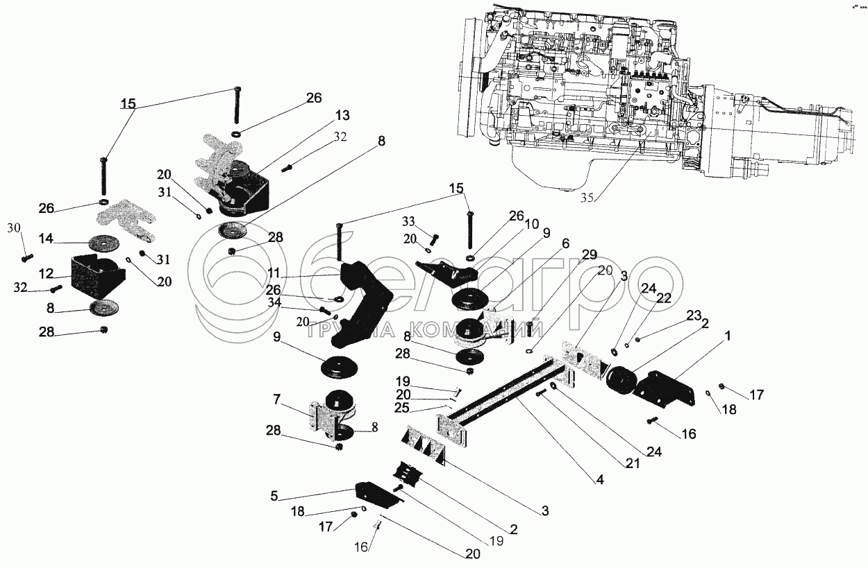 Каталог запасных частей к технике: МАЗ-544069. Крепление двигателя 643069-1001002