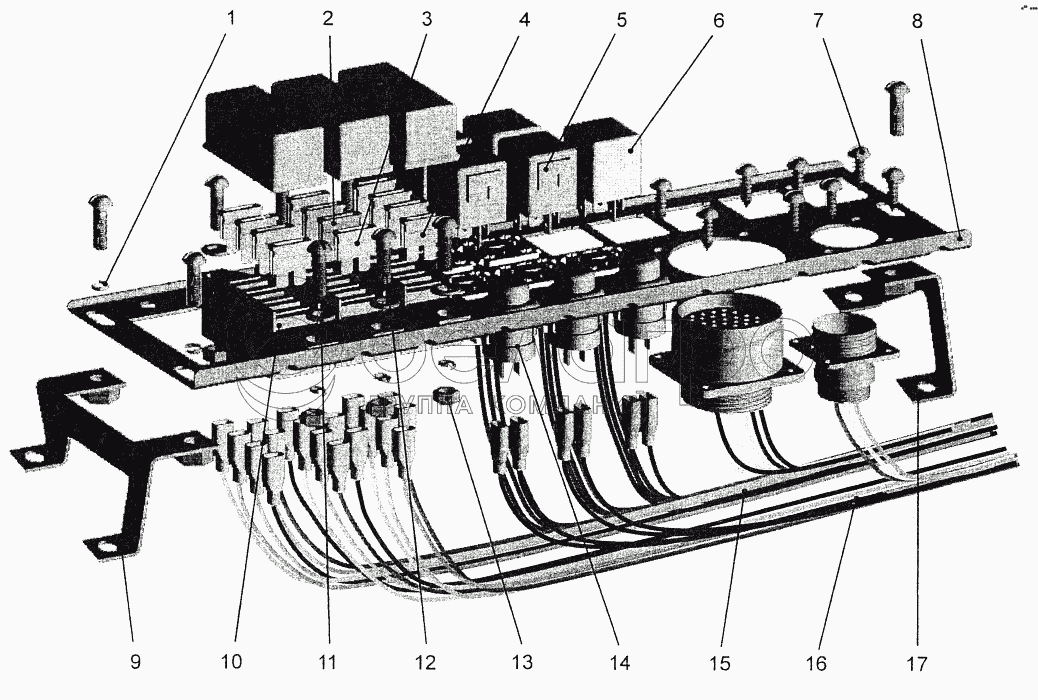 Каталог запасных частей к технике: МАЗ-544069. Панель реле и предохранителей автомобиля
