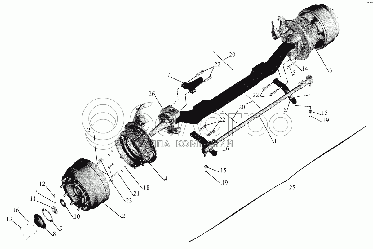Каталог запасных частей к технике: МАЗ-544069. Передняя ось 6430-3000015