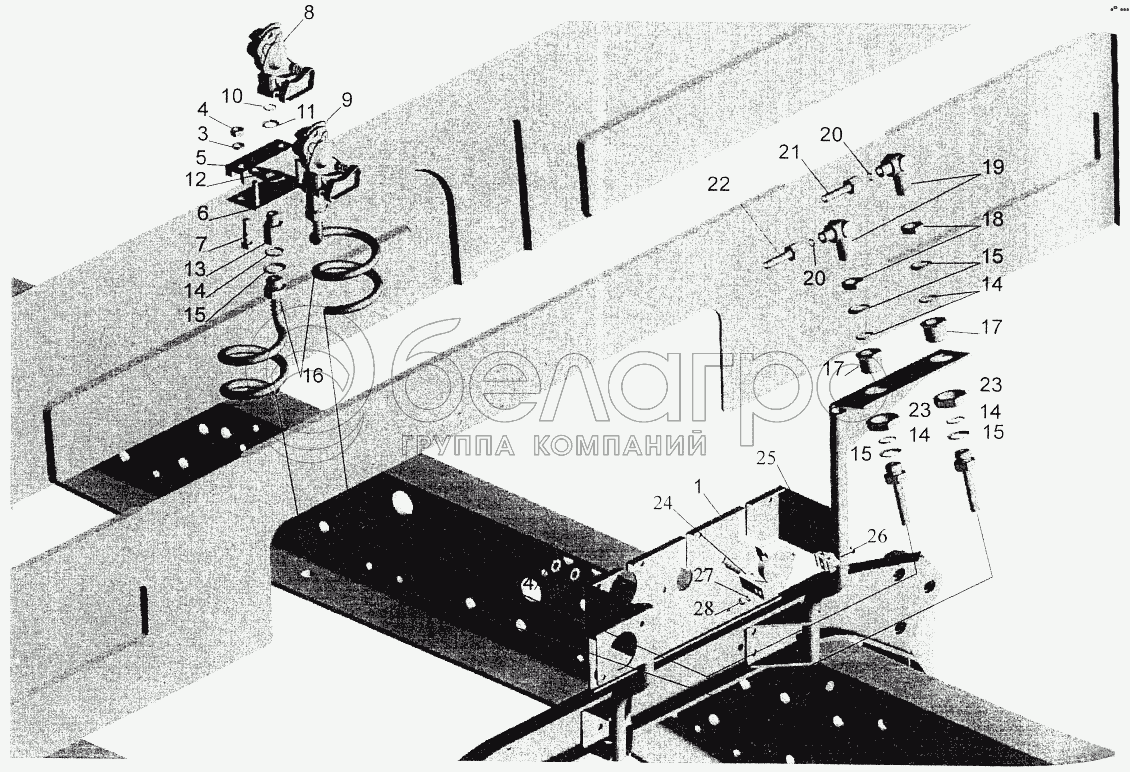 Каталог запасных частей к технике: МАЗ-544069. Пневмовыводы на полуприцеп и присоединительная арматура