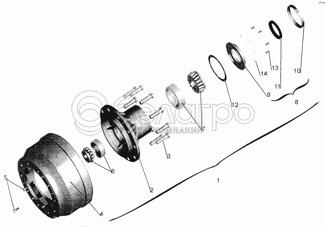 Каталог запасных частей к технике: МАЗ-544069. Ступица переднего колеса 6430-3103006