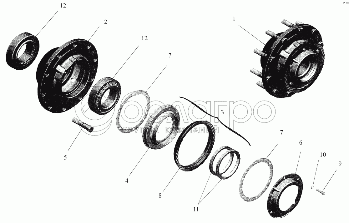 Каталог запасных частей к технике: МАЗ-544069. Ступица заднего моста