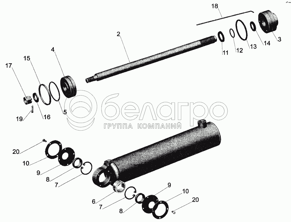 Каталог запасных частей к технике: МАЗ-544069. Цилиндр ЦГ80-360-3405010-20