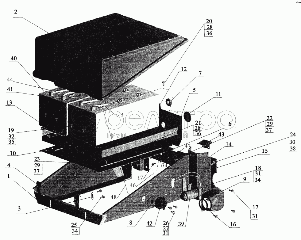 Каталог запасных частей к технике: МАЗ-544069. Установка аккумуляторных батарей