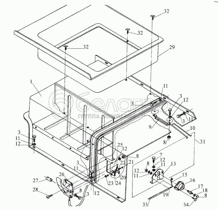 Каталог запасных частей к технике: МАЗ-544069. Установка инструментального ящика 6430-5108010