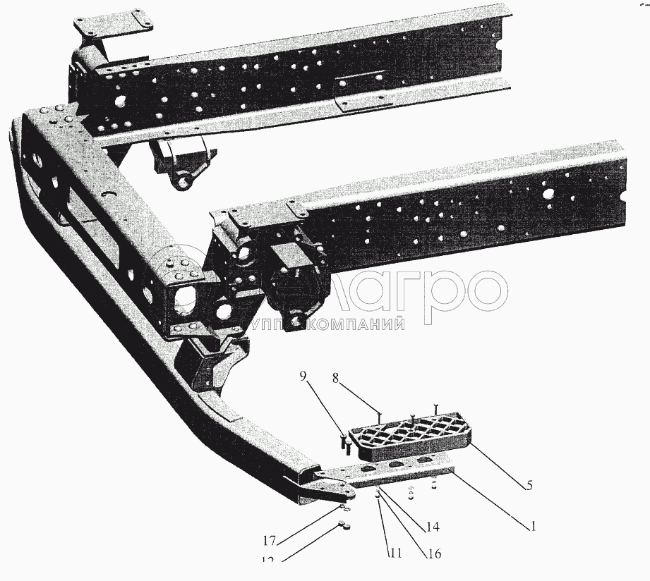 Каталог запасных частей к технике: МАЗ-544069. Установка нижней подножки 544008-8400016-010