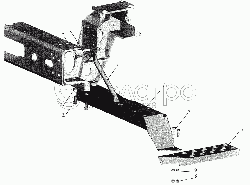 Каталог запасных частей к технике: МАЗ-544069. Установка нижней подножки 6430-8400016