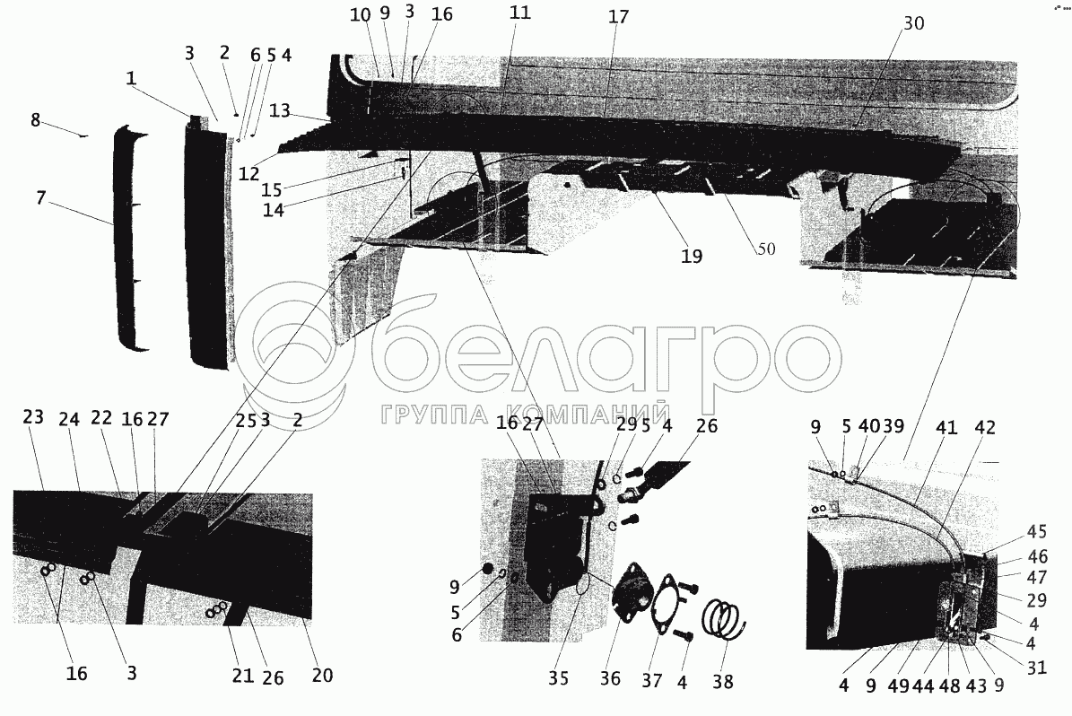 Каталог запасных частей к технике: МАЗ-544069. Установка облицовки и боковых щитков 6430-8400018