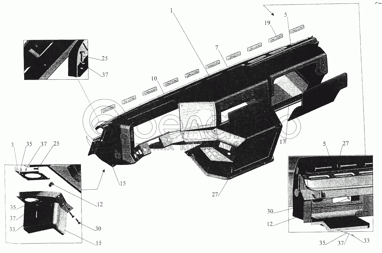 Каталог запасных частей к технике: МАЗ-544069. Установка панели приборов 6430-5300014-020