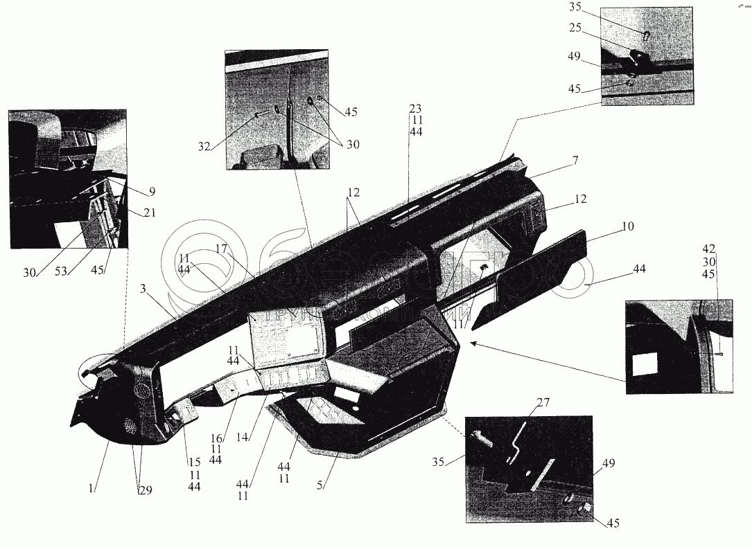 Каталог запасных частей к технике: МАЗ-544069. Установка панели приборов 6430-5300016-010