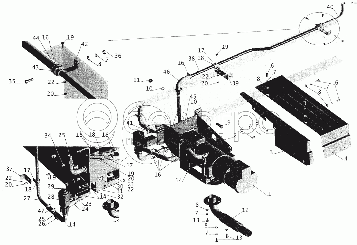 Каталог запасных частей к технике: МАЗ-544069. Установка подогревателя 64302-1015001-030
