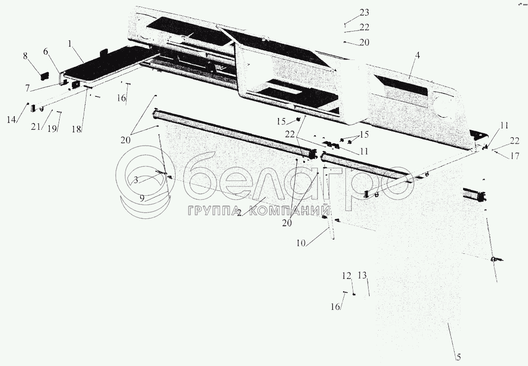 Каталог запасных частей к технике: МАЗ-544069. Установка полки, штор, козырька 6430-820034