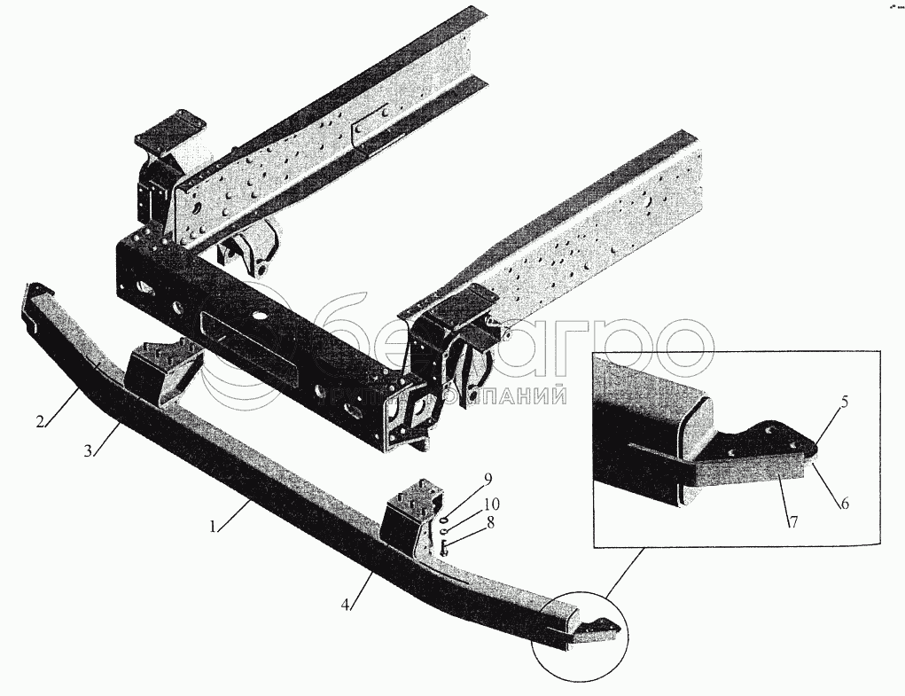 Каталог запасных частей к технике: МАЗ-544069. Установка противоподкатного бруса 6430-2800030-001