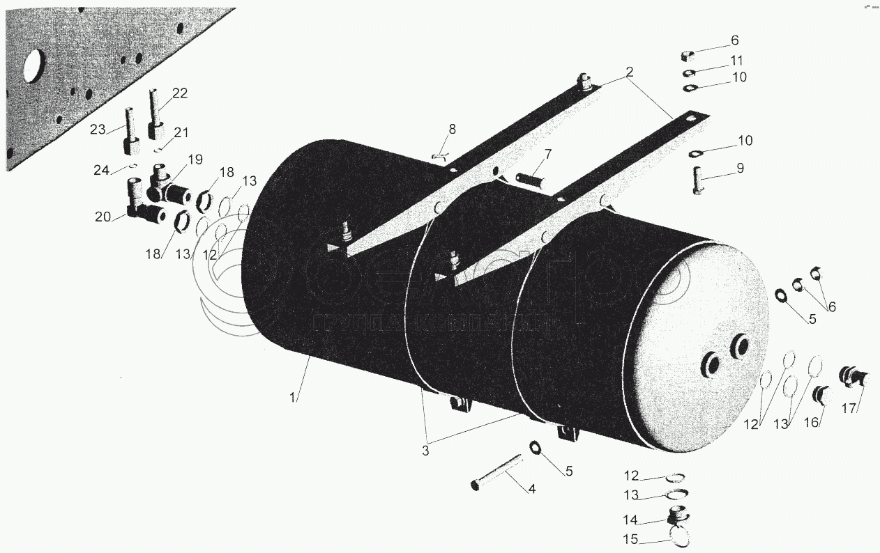 Каталог запасных частей к технике: МАЗ-544069. Установка ресивера и присоединительной арматуры