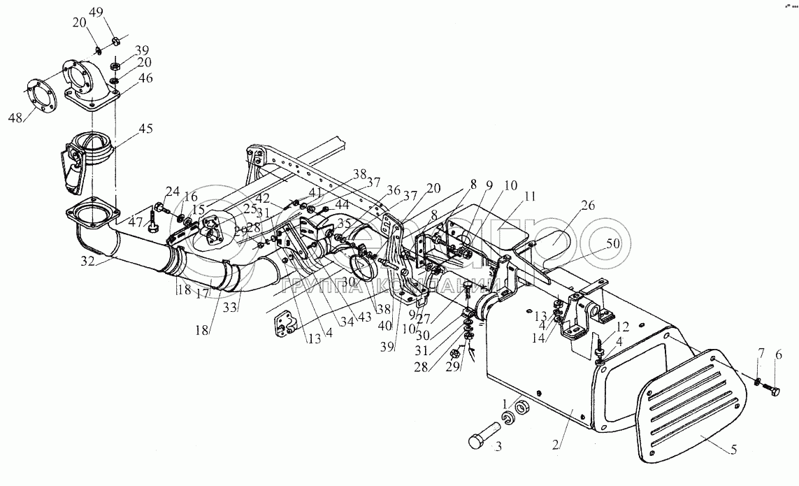 Каталог запасных частей к технике: МАЗ-544069. Установка системы выпуска 643069-1200001-001