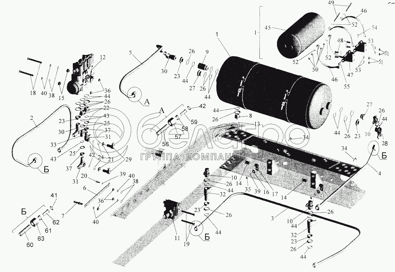 Каталог запасных частей к технике: МАЗ-544069. Установка трубопроводов (ECAS) 5440-2900018-001