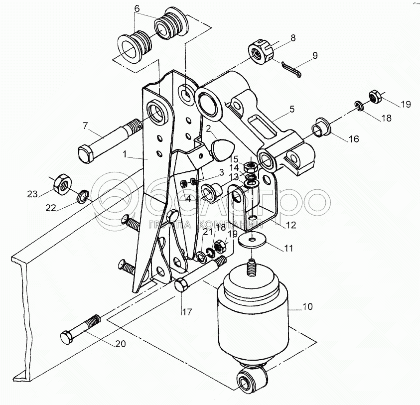 Каталог запасных частей к технике: МАЗ-544069. Заднее подрессоривание кабины 6430-5001800-001