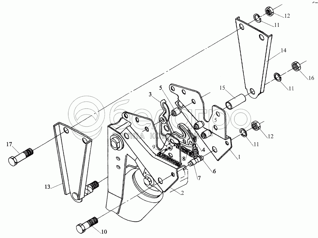 Каталог запасных частей к технике: МАЗ-544069. Запорный механизм кабины 6430-5001550
