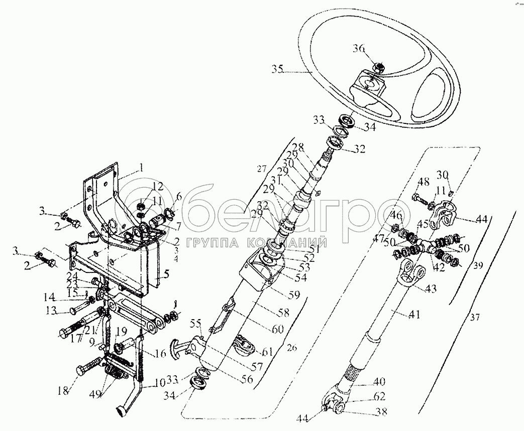 Каталог запасных частей к технике: МАЗ-5440. Колонка рулевая с колесом рулевого управления