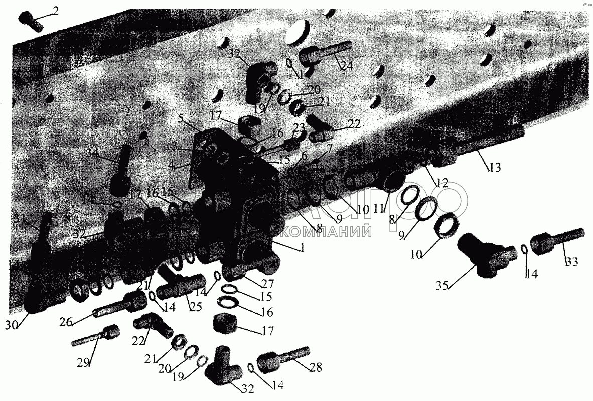 Каталог запасных частей к технике: МАЗ-5440. Крепление четырехконтурного клапана