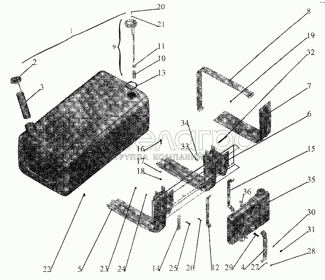 Каталог запасных частей к технике: МАЗ-5440. Крепление топливного бака и бачка подогревателя
