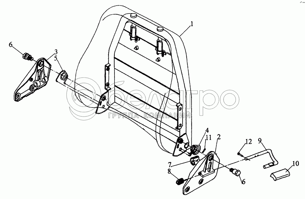 Каталог запасных частей к технике: МАЗ-5440. Механизм поворота и фиксации спинки сиденья