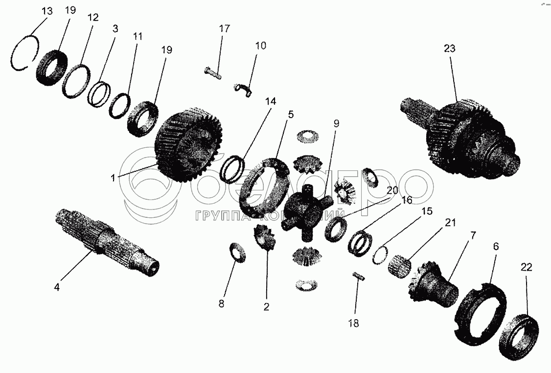 Каталог запасных частей к технике: МАЗ-5440. Редуктор среднего моста. Дифференциал межосевой
