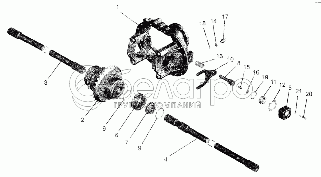 Каталог запасных частей к технике: МАЗ-5440. Редуктор среднего моста. Межколесная блокировка дифференциала