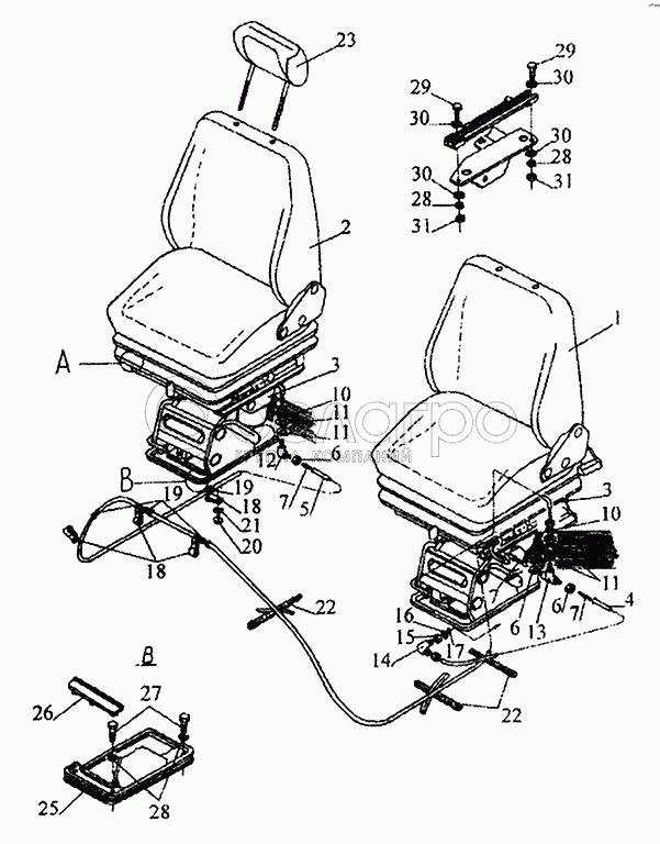 Каталог запасных частей к технике: МАЗ-5440. Установка и пневмопитание сиденья