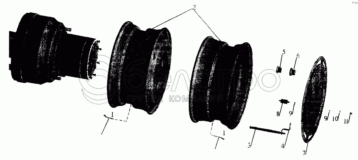 Каталог запасных частей к технике: МАЗ-5440. Установка колес на задний и средний мосты