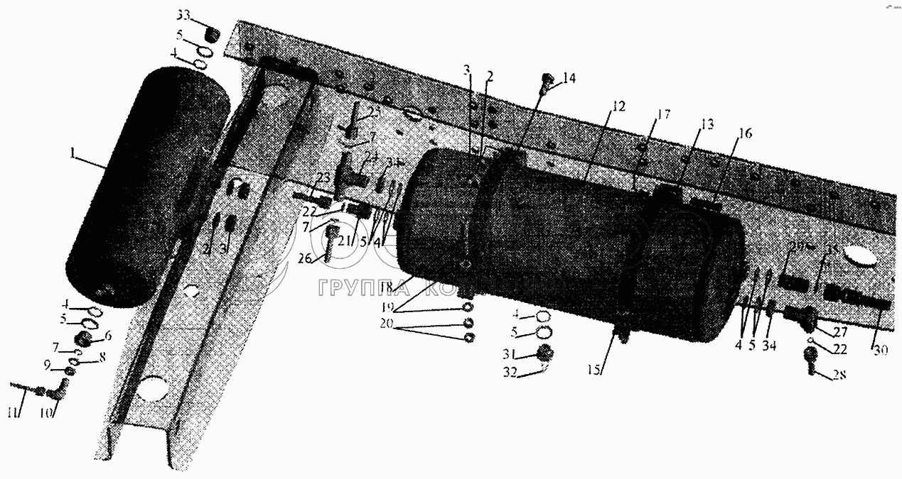 Каталог запасных частей к технике: МАЗ-5440. Установка ресиверов и присоединительной арматуры