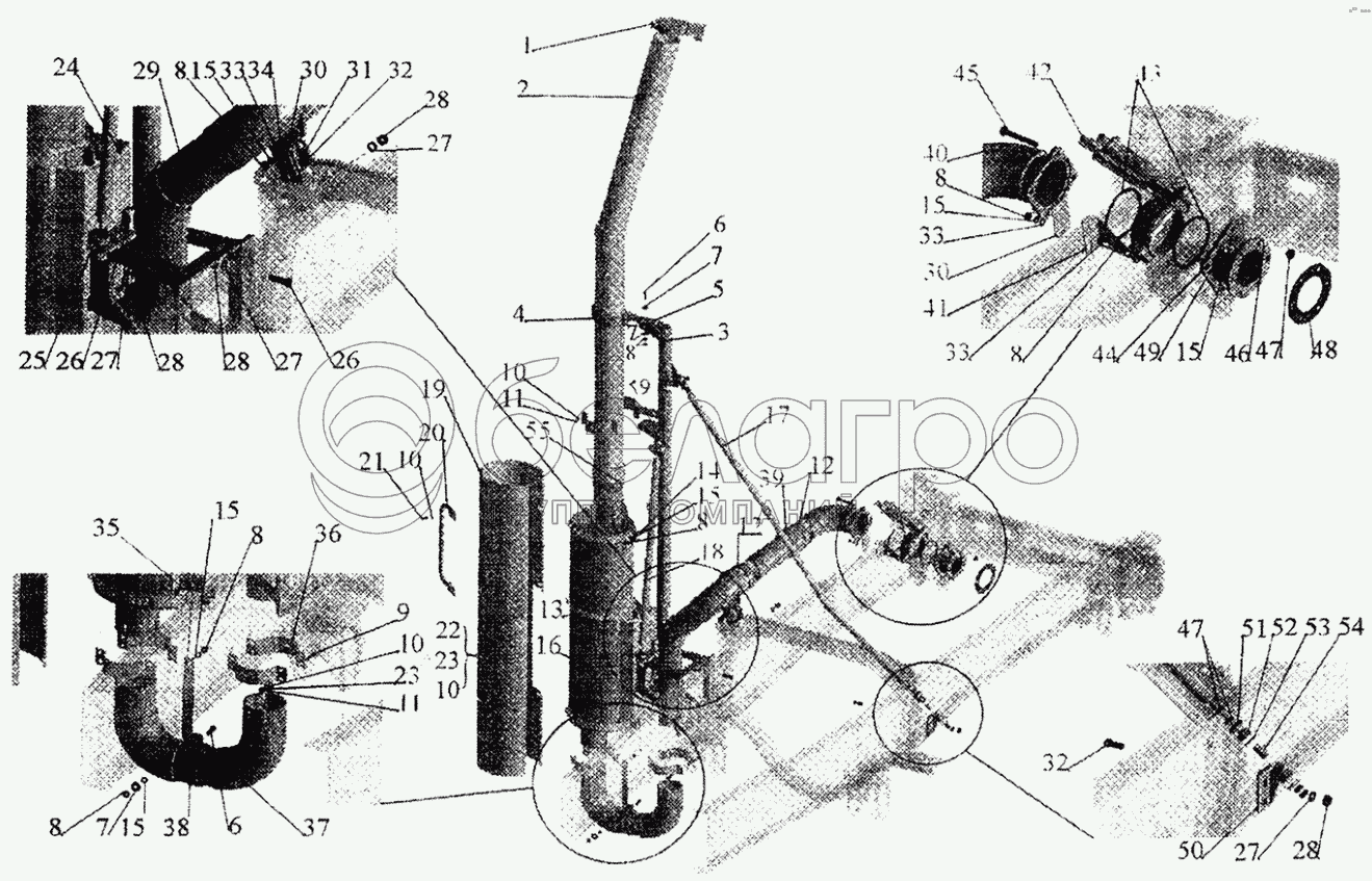 Каталог запасных частей к технике: МАЗ-5440. Установка системы выпуска