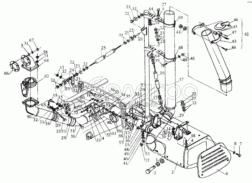 Каталог запасных частей к технике: МАЗ-5440. Установка системы выпуска