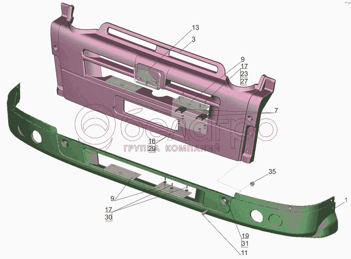 Каталог запасных частей к технике: МАЗ-5440B5. Бампер передний 643019-2803010